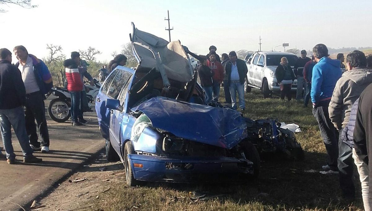 El VW Golf quedó irreconocible luego de la violenta colisión contra la estructura que formaba parte del rodado pesado.