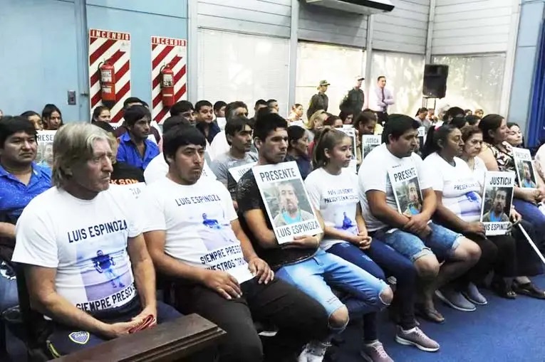 El Tribunal Oral Federal estaba abarrotado. Con pancartas y camisetas reclamando justicia por la víctima, la familia Espinoza y otros habitantes de Rodeo Grande y Villa Chicligasta asistieron en grupo. Camuña admitió que el informe del médico forense era claro y que llevaba a descartar la imputación inicial por desaparición forzada de la víctima.