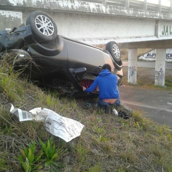 Ocurrió alrededor de las 7:30 en el puente que cruza la autopista camino a Campo de Herrera. Un auto ocupado por una pareja de jóvenes quedó casi colgando del puente. Afortunadamente con la ayuda de automovilistas que pasaron por el lugar y la rápida intervención policial sus ocupantes fueron rescatados.