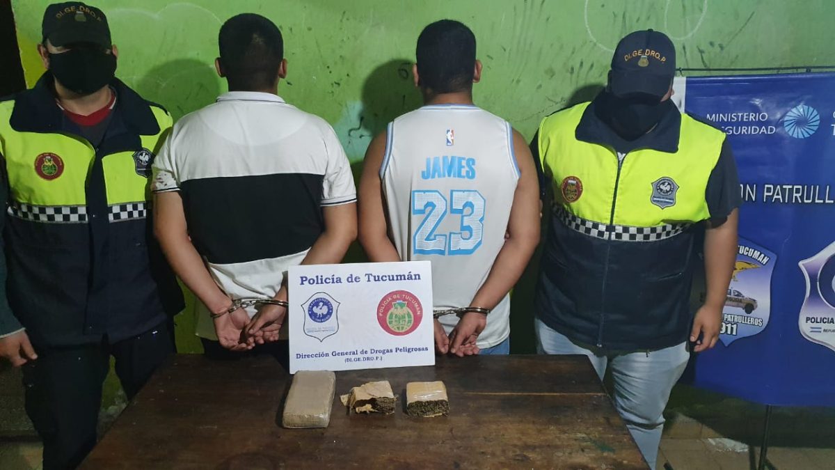 Los sospechosos llevaban en una camioneta dos panes de marihuana compactada de más de un kilo y dinero en efectivo, presuntamente, producto de la venta de la sustancia.