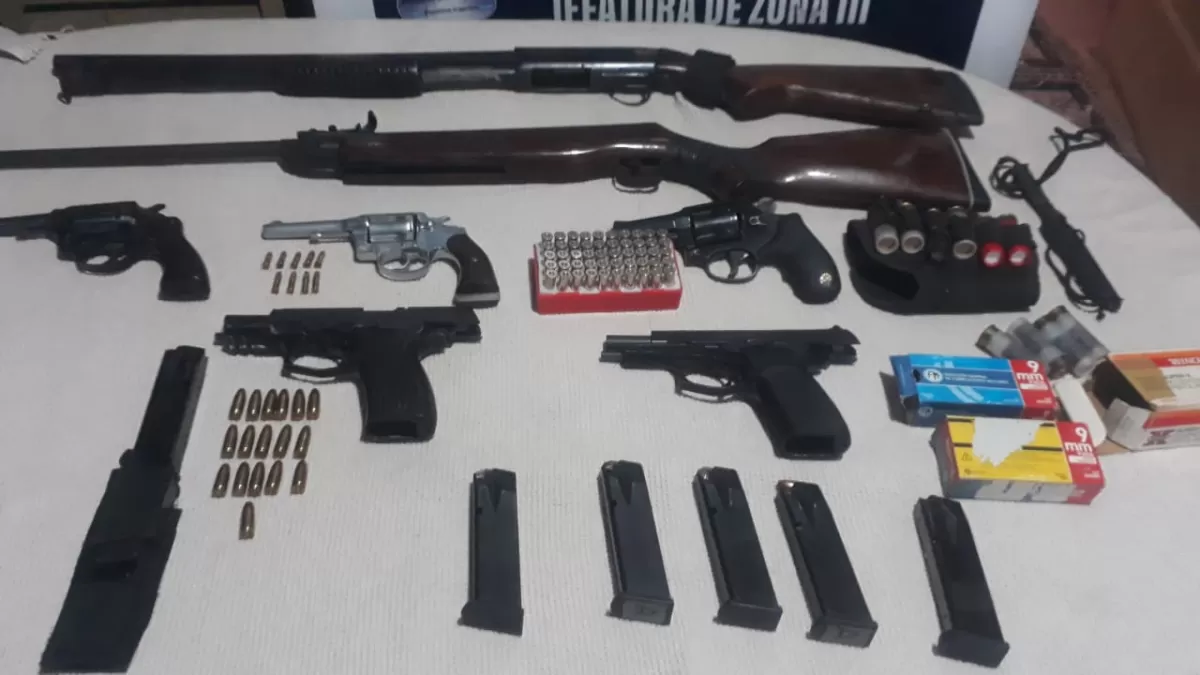 En el listado aparecen dos pistolas, dos revólveres y una escopeta, entre otras armas. También se encontraron cajas de cartuchos y otros elementos que fueron puestos a disposición de la Justicia.