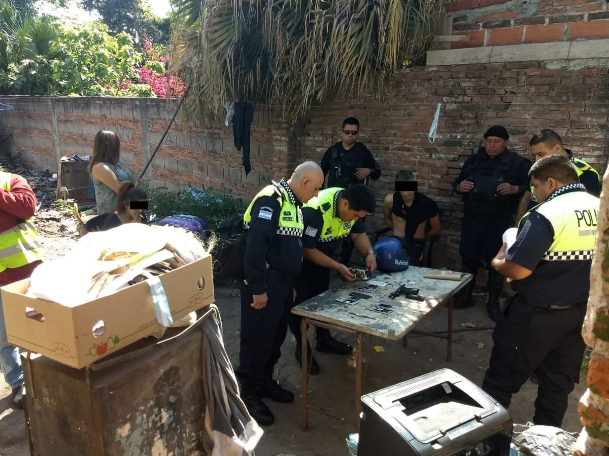 Como resultado de los operativos supervisados por el jefe del Departamento Comisario Mayor Oscar Nazareno Villagra, secuestraron un arma de fuego tipo pistola calibre 9 mm con un cargador sin cartuchos, una vaina servida, una barreta, un cuchillo, un casco de motocicleta, documentación variada y tres celulares.