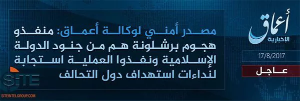 El grupo terrorista Estado Islámico (ISIS) se adjudicó el ataque con una camioneta en Barcelona que dejó al menos 13 muertos y más de 100 heridos, según comunicó este jueves por la tarde la agencia de noticias Amaq, vinculada a movimientos yihadistas.