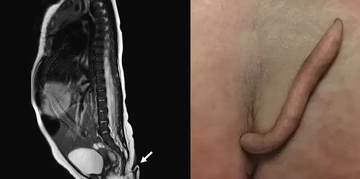 Los médicos detectaron que la niña tenía una cola de 5,7 cm de largo, cubierta de piel y pelo fino, con una extremidad puntiaguda.