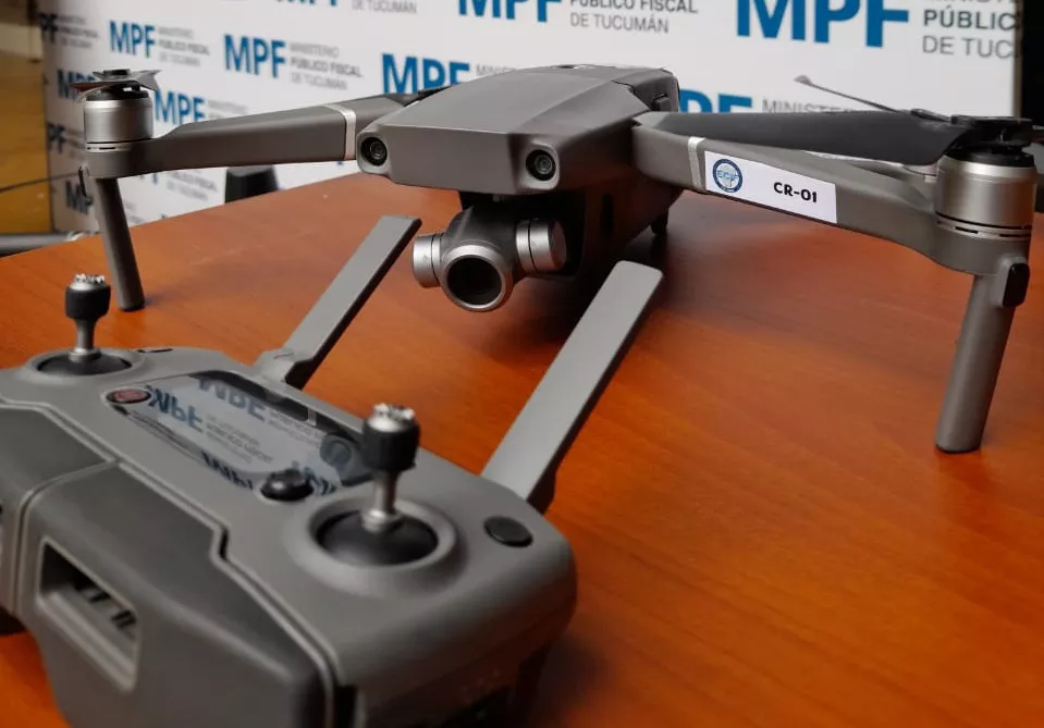 En el patio de los tribunales ubicado en avenida Sarmiento 431, el ministro público fiscal, Edmundo Jiménez, junto con el coordinador general del Equipo Científico de Investigaciones Fiscales (ECIF), Luis Germain, exhibieron un dron de última tecnología, incorporado recientemente a Informática Forense.