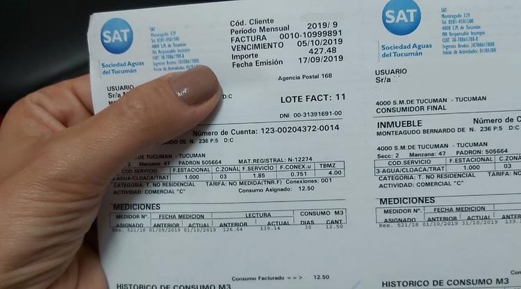El titular de la Sociedad Aguas de Tucumán (SAT), explicó que las facturas bimestrales de septiembre y octubre, ya habían sido distribuidas y que ante esto, las próximas facturas se harán notas de créditos para retribuir a favor del cliente.