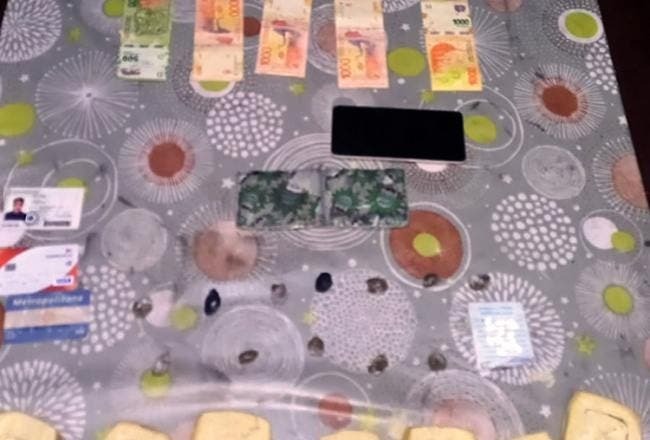 La inspección reveló la presencia de 12 envoltorios de marihuana, 14 pastillas ansiolíticas sin leyenda ni envoltorio visible, la suma de 8890 pesos y un celular.