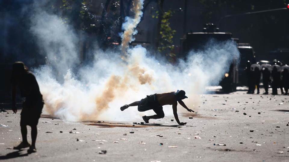 Una jornada de tensión se vive en la ciudad de Buenos Aires. Este mediodía, un grupo de manifestantes que se acercó al Congreso para protestar contra la reforma previsional  que impulsa el Gobierno, derribó unas vallas y tiró piedras y botellas contra el cordón policial. Ya con la sesión en marcha, los incidentes se agudizaron. Tras un breve cuarto intermedio, pasadas las 15 horas, la protesta comenzó a trasladarse a la avenida 9 de Julio.