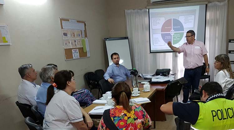 El coordinador de Seguridad del Siprosa, Federico Jordán, estuvo a cargo de exponer las características y avances del plan para las policlínicas y CAPS. Allí presentó un diagnóstico de situación de los servicios, los factores de razones de violencia y, en base a esto, los principales enfoques estratégicos de abordar la violencia física y verbal en los en los centros de salud.
