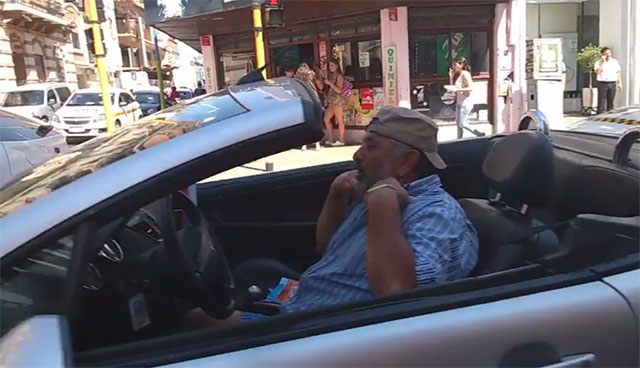 Esta semana fue filmado por el periodista monterizo Freddy Bazán, circulando por una calle céntrica de la capital más precisamente en 25 de Mayo cruce con calle San Juan, escuchando cumbia, conduciendo a la velocidad acostumbrada pero sin usar las manos en el volante y acomodándose el cuello de su camisa de mangas cortas, adornado con una gorra de visera para atrás.