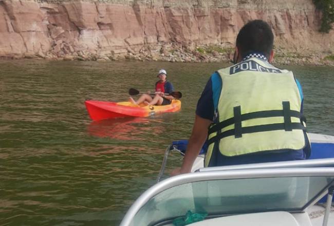La policía Lacustre rescató durante la siesta a un adolescente de 16 años que practicaba kayac  y quedó en medio de la tormenta en la zona conocida como “Bahia 3”, a dos kilómetros del embarcadero del dique El Cadillal.