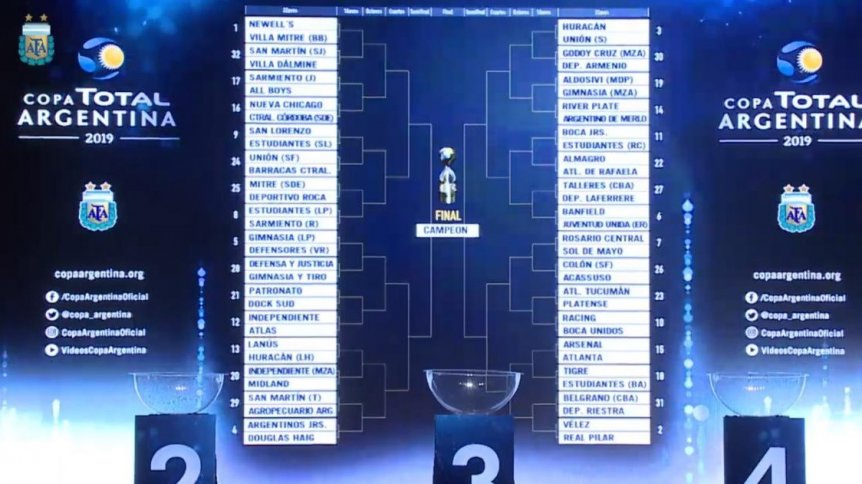 La octava edición del torneo que agrupa equipos de todo el país y todas las categorías ya tiene su cuadro sorteado. Los equipos tucumanos ya conocen sus rivales para jugar los 32 avos de final de la Copa Argentina, Atlético Tucumán se enfrentara a Platense y San Martin hará lo propio ante Agropucuario.