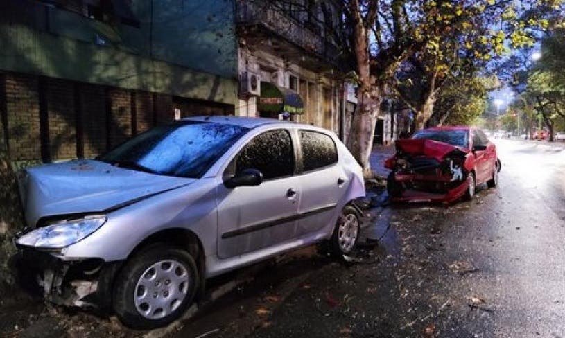El dueño del Fiat rojo que circulaba por la avenida, no aguantó el sueño y se durmió, lo que provocó que un auto Peugeot color gris que estaba estacionado sea impactado.