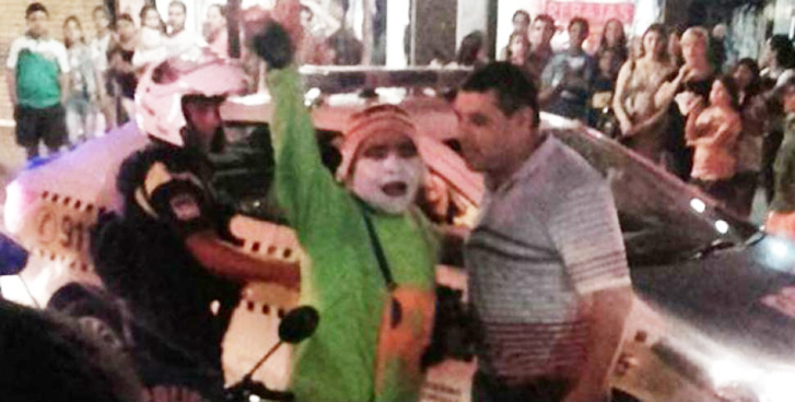 Según denunció una mujer este fin de semana, el payaso se acercó a su hijo de 11 años de edad y lo tocó en una nalga mientras hacía sonar su silbato lo que asustó al chico, el hecho ocurrió en la esquina de 25 de Mayo y San Martín.