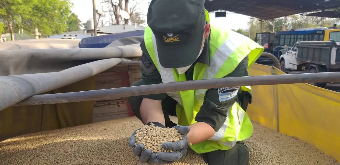 Dos de los camiones poseía 64.700 kilos de soja a granel y los dos restantes contenían 41.500 kilos de lino.