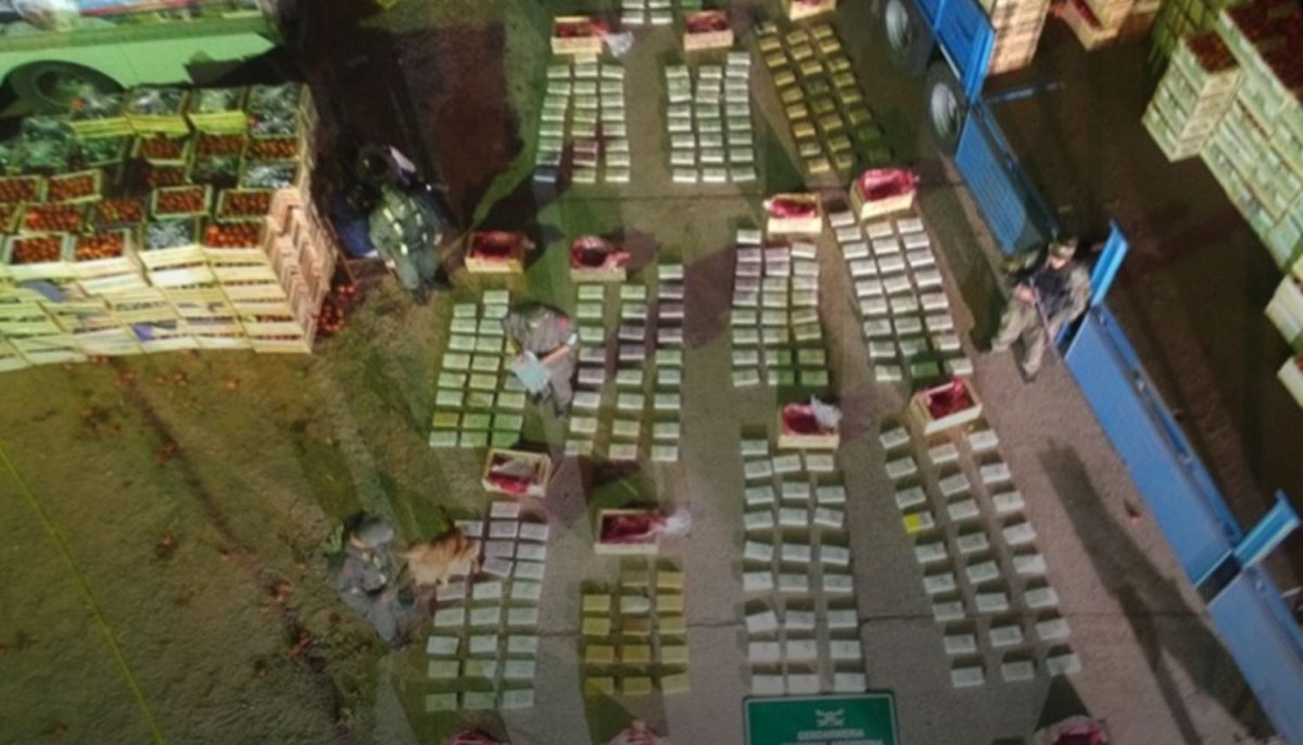 Los gendarmes acudieron a un pelotón de la fuerza para descargar los cientos de cajones de tomate y luego de las 21 del lunes a encontrar en algunos de ellos los paquetes de cocaína