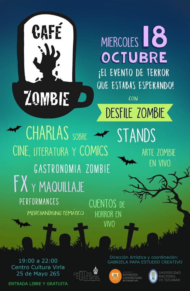 La cita es este miércoles a las 19 en el Centro Cultural Virla (25 de mayo 265) donde tendrá lugar el llamado “Primer Café Zombie” de Tucumán: durante tres horas, los asistentes podrán ver material vinculado con series, cine, comics, literatura, arte y efectos especiales que tienen como referencia principal a los llamados “muertos vivos”.