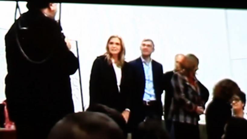 La actual senadora ingresó al aula acompañada del legislador José María Canelada, la legisladora Adela Terraf, el candidato a vicegobernador José Manuel Paz y Domingo Amaya. Cuando el profesor de la clase los presentó, les dijo a los alumnos que “son como nosotros. Están trabajando en una postulación para el 9 de  junio”, y les pidió un minuto de atención antes de comenzar el examen.