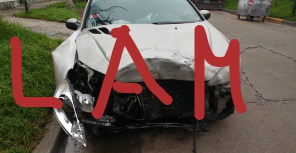 En las fotos, que también fueron difundidas por Ángel de Brito en las redes sociales, se puede ver cómo la trompa de su automóvil compacto quedó completamente destruida y cómo saltaron los airbags de los dos asientos.