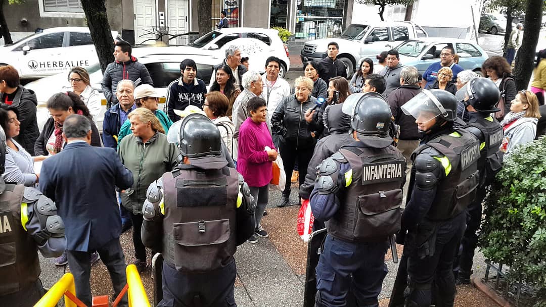 Cuando los vecinos se acercaron a la sede de la empresa, en Amadeo Jaques y Avenida Avellaneda, la empresa bajó las persianas para que los manifestantes no pudieran ingresar, y éstos intentaron tirarla abajo. Del otro lado de las rejas, un empleado de la empresa le gritó a los abuelos “ustedes son unos vándalos”. Inmediatamente aparecieron efectivos de Infantería con escudos y escopetas, dispuestos a reprimir. “Lamentablemente tenemos que pagar la boleta cuando llega porque nos da vergüenza cuando vienen a cortarnos la luz”, sollozó una vecina.