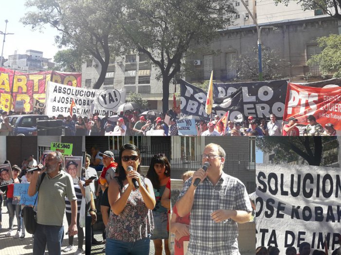 Para el martes estaba previsto el inicio del juicio oral contra el dirigente del Partido Obrero, José Kobak, pero fue suspendido tras la protesta que realizaban los militantes frente a los Tribunales de avenida Sarmiento al 400.