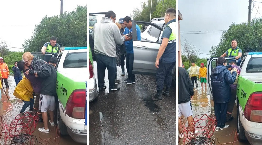 Según el reporte, un tractor de la comuna traslada a los vecinos desde las zonas inundadas hasta la ruta, mientras que móviles policiales los llevan al CAPS de la zona, donde reciben asistencia médica y contención.