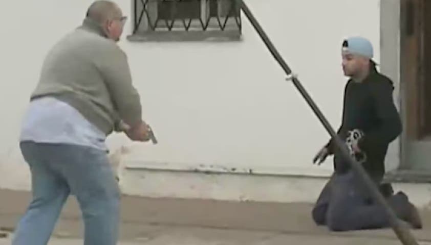 El conductor obligó al joven a arrodillarse en la vereda mientras lo apuntaba con un arma de fuego y le gritaba: “¡Tirate abajo, boca abajo!”.