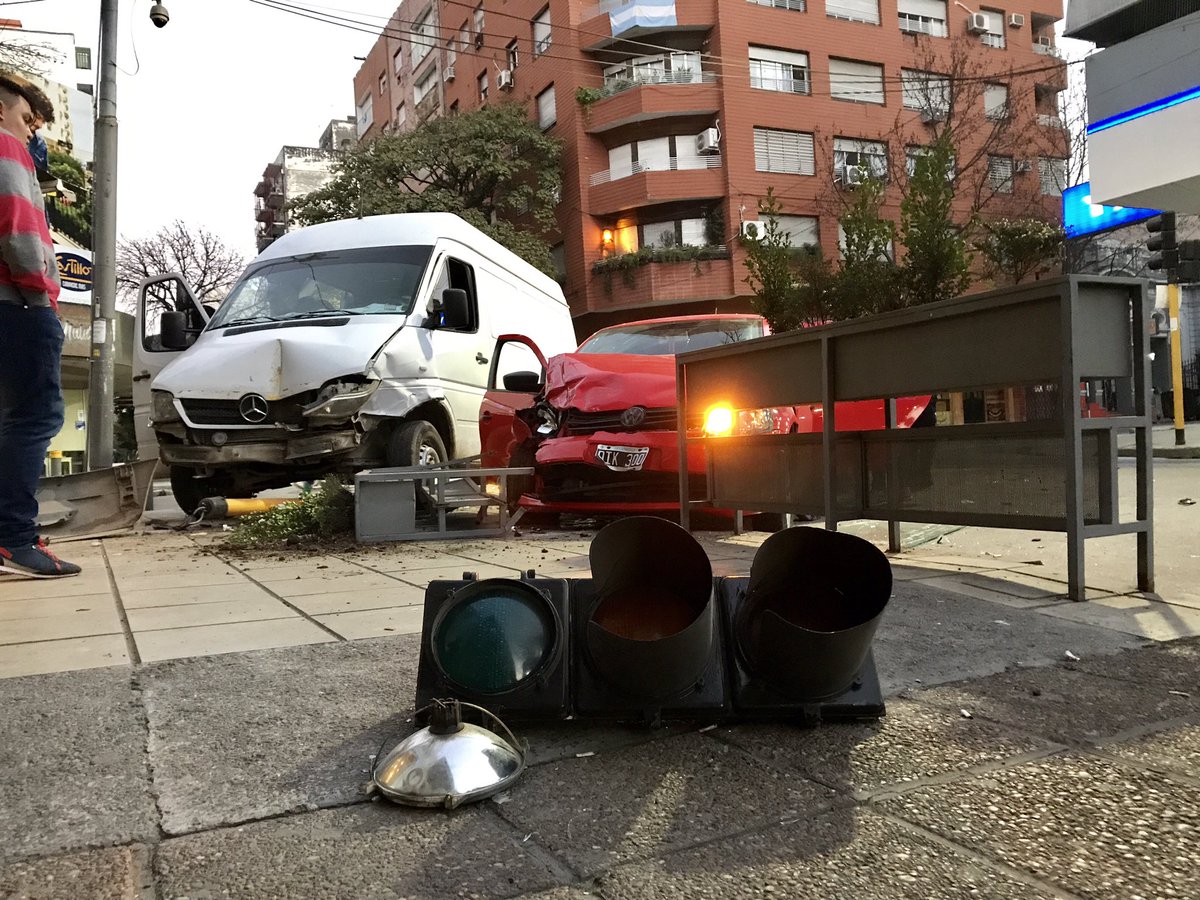 El choque ocurrió minutos después de las 7.30, cuando por razones que se investigan, un auto Volkswagen Gol que circulaba por Corrientes impactó con una trafic Mercedes, que lo hacía por 25 de Mayo, informó La Gaceta.
