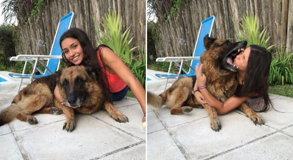 Una escena típica de verano: sol a pleno, una pileta con agua clara y Lara (17 años) sacándose fotos. Nada fuera de lo común, hasta que a la adolescente se le ocurrió tomarse algunas fotos con Kenai, un ovejero alemán viejo y tranquilo.
