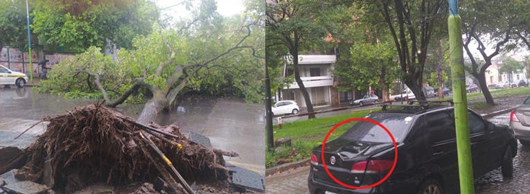 La tormenta sorprendió a los tucumanos en la mañana de este martes y muchos empezaron a vivir las consecuencias del nuevo temporal. Así se registraron situaciones de “película”: un automovilista dijo haber vivido un milagro luego de que un árbol cayera encima del vehículo que conducía en el preciso instante en que pasaba por el lugar.