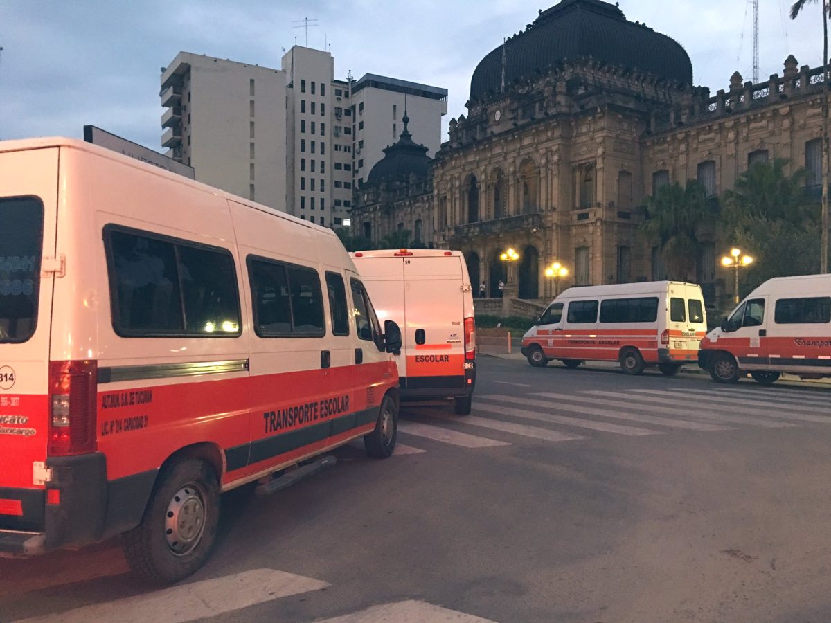 Durante la madrugada de este martes, unidades de transportes escolares se estacionaron frente a la Casa de Gobierno como medida de protesta y poder tener una reunión sobre la delicada situación que atraviesa el sector.