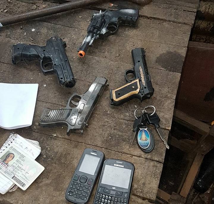 Se incautaron dos motocicletas de 150 cc, un canguro color verde, un canguro color azul, 4 replicas de pistolas de plástico y dos teléfonos celulares. En la pesquisa se observó a una mujer que se encontraba en el lugar y que ocultaba debajo del corpiño una bolsa,se corroboró que contenía en su interior 40 “bochitas”de cocaína y otro envoltorio con marihuana. También tomó intervención personal de la DIGEDROP quienes analizaron las sustancias. La mujer fue identificada como Cynthia Melisa Lescano de 21 años de edad.