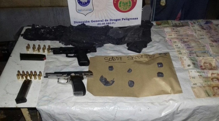 “Se encontraron envoltorios de marihuana y dos armas de fuego con cargadores completos, listas para su accionar. Además, había 26 mil pesos, celulares y material para fraccionar droga”, detalló.