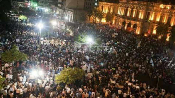 Las columnas de personas comenzaron esta tarde en Junín y Santa Fe, en la ex Jefatura de Policía, y la columna bajó por Santa Fe hasta 25 de Mayo, y de ahí hasta la plaza Independencia. “(Mauricio) Macri, basura, vos sos la Dictadura”, se pudo escuchar durante la marcha.