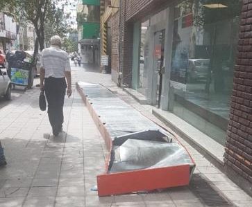 Alrededor de las 15 el enorme cartel de un banco ubicado en San Martín al 800, en pleno microcentro de la capital, se desprendió de su lugar a causa del fuerte viento y cayó en la vereda, sin que se produjeran daños a las personas, afortunadamente.
