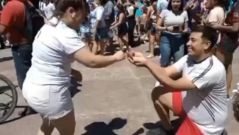Tucumano le propuso casamiento a su pareja en pleno festejo mundialista