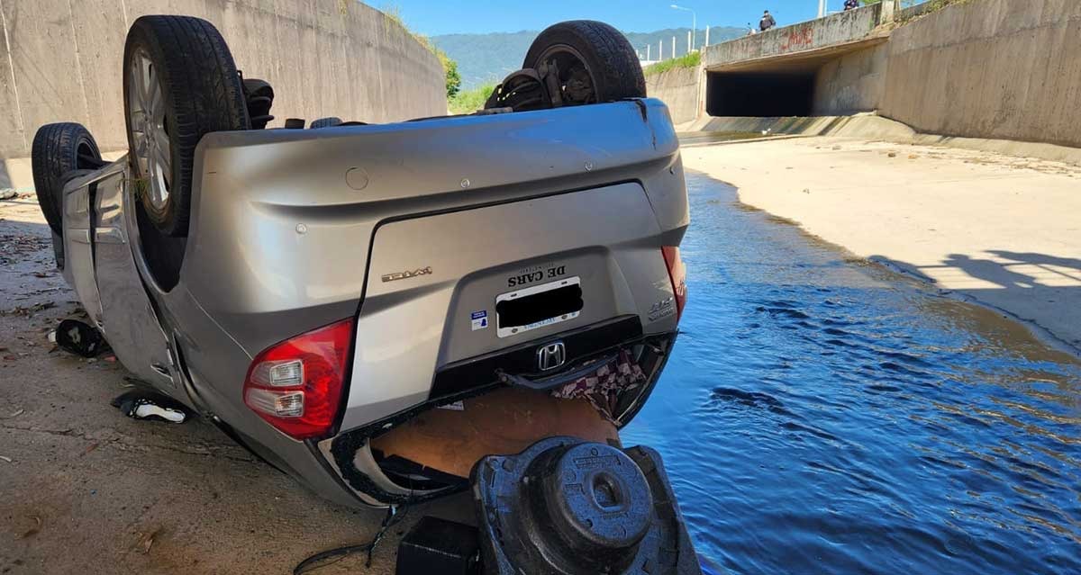 Un auto Honda Fit se cayo en el canal de Camino de Sirga y Federico Rossi, en Yerba Buena, según informes iniciales. En el vehículo viajaban cuatro personas, y afortunadamente, no se reportaron víctimas fatales.