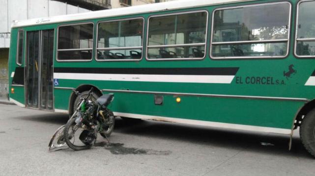 Alrededor de las 6 de la mañana un colectivo y una motocicleta colisionaron en la esquina de calles San Martín y Salta, por lo que personal de tránsito tuvo que cortar la circulación en calles San Martín y Junín, causando caos vehículo.
