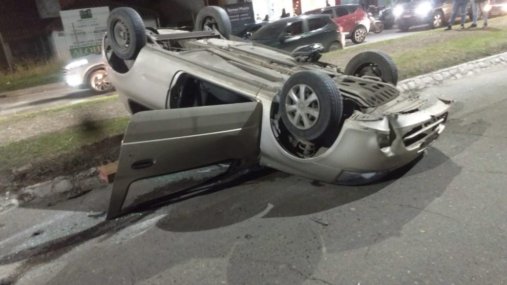 El impresionante accidente ocurrió la noche de este miércoles en Yerba Buena. El conductor de un auto Renault Clio sufrió lesiones al volcar su vehículo en la avenida Aconquija 290, en la trocha de circulación hacia el Este.