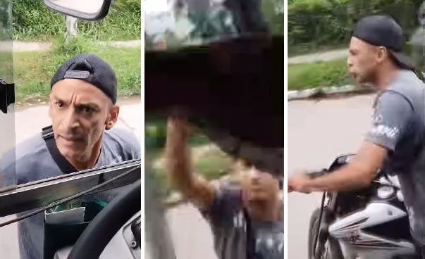 Según testigos a bordo del autobús, el altercado comenzó cuando el motociclista acusó al conductor del transporte público de encerrarlo. El agresor bloqueó la moto frente al autobús, intercambiaron insultos y luego el motociclista rompió la ventanilla delantera.
