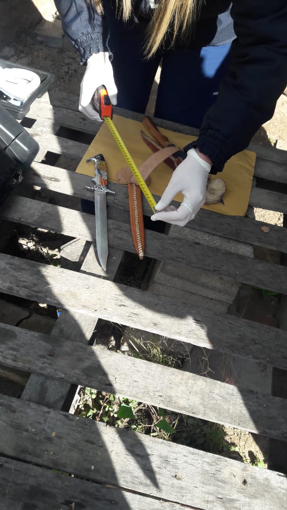 Fueron secuestrados dos cuchillos y un látigo, elementos que serán sometidos a las pericias de rigor. Estos objetos presentaban manchas pardo rojizas y fueron hallados en el domicilio donde el menor fue ubicado. Ya fueron remitidos a laboratorio para su análisis.