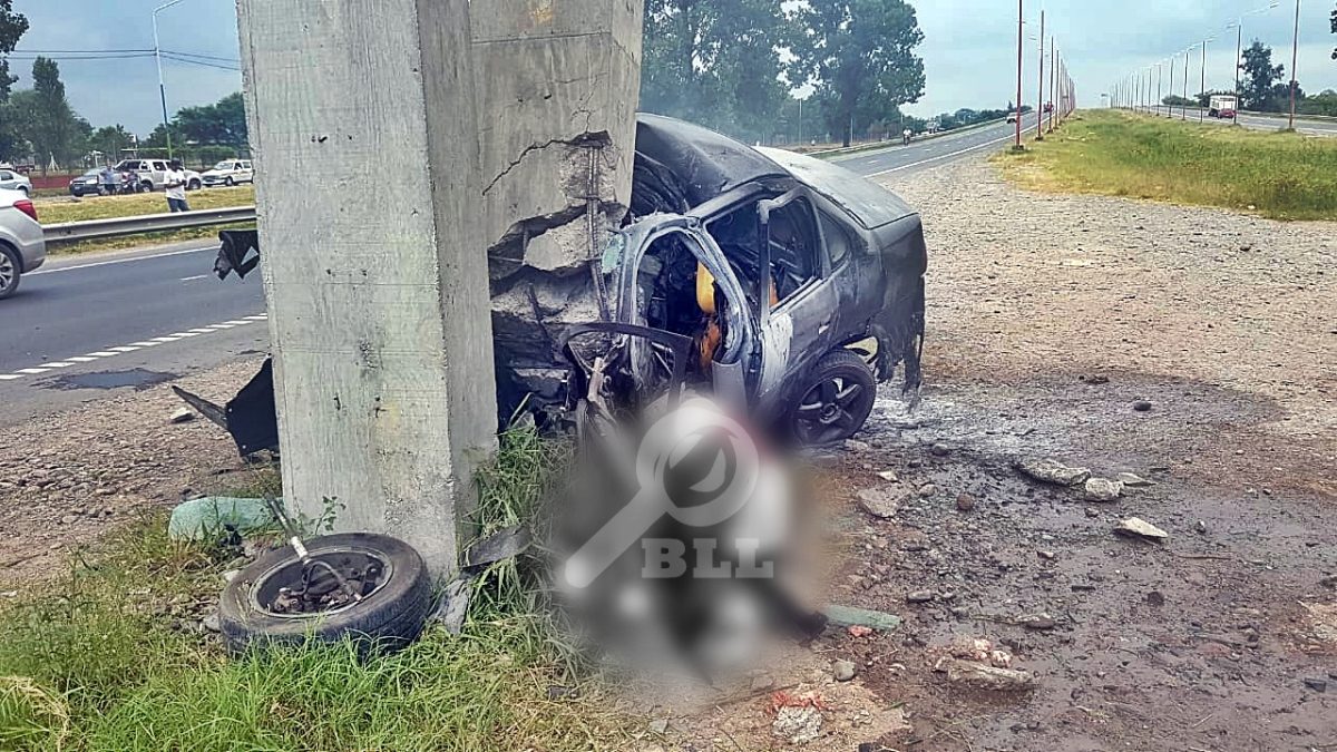 Según testigos afirman que el rodado pincho una rueda y perdió el control, por lo que terminó impactando con la columna del puente, luego el rodado se incendió.