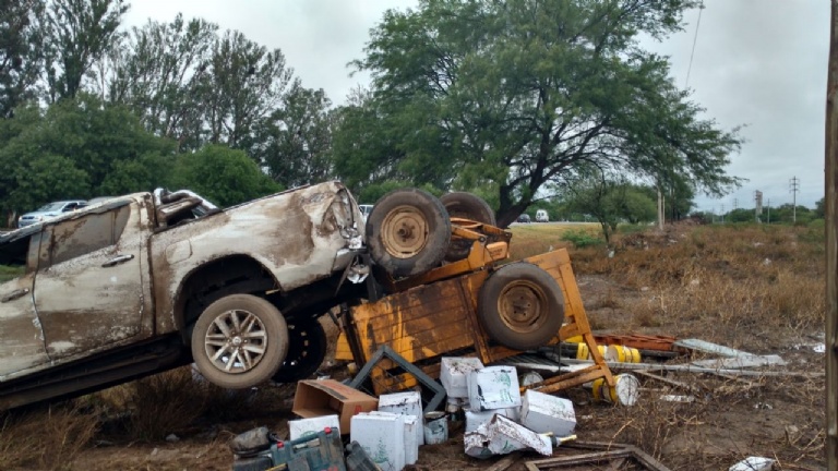 Según informaron, la camioneta Toyota Hilux de color blanco que venía con un carro desde la provincia de Tucumán mordió la banquina y terminó cayendo al costado de la ruta.