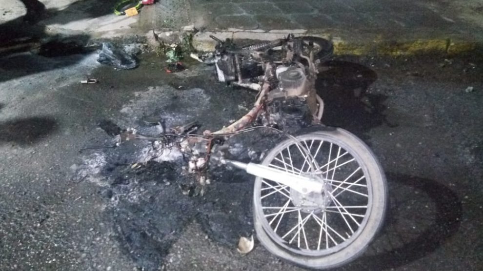 Una motocicleta terminó consumida por las llames en un choque ocurrido en Barrio Sur. Afortunadamente su conductor, un hombre mayor de edad, no sufrió heridas de gravedad.