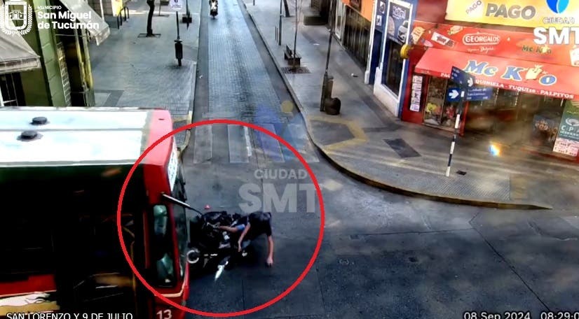 El incidente fue captado por una cámara de monitoreo de la ciudad. Según el informe oficial del Centro de Operaciones de Monitoreo Municipal (COMM), no se registraron lesiones graves en el motociclista ni en los pasajeros del colectivo.