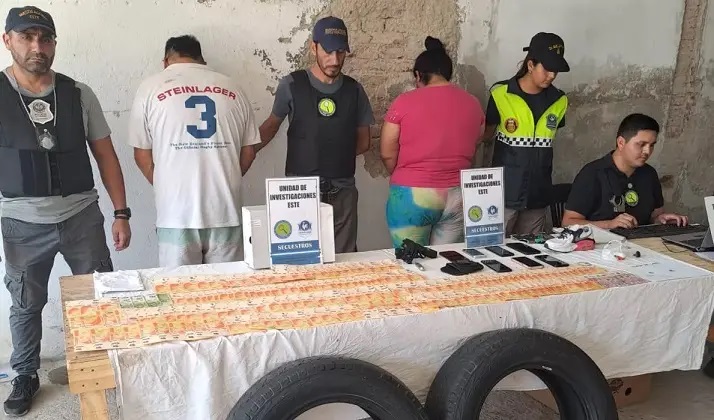 En el domicilio hallaron cocaína, $ 170.000 en efectivo, siete teléfonos celulares, una réplica de arma de fuego y dos cubiertas de dudosa procedencia.