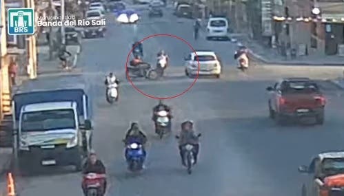 Un fuerte choque entre dos motocicletas ocurrido este jueves a las 18:36 en la intersección de Dorrego y Congreso, en Banda del Río Salí, dejó tres personas heridas: una mujer de 26 años, su hija de 5 años y un hombre. Según registraron las cámaras de seguridad, el accidente se produjo cuando un motociclista distraído embistió a otro.