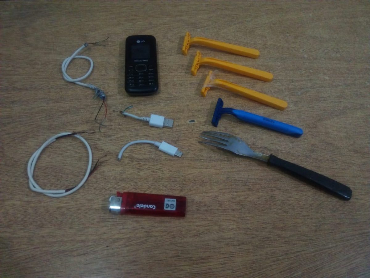 Además, se encontraron máquinas de afeitar, tenedores, cargadores e celular y encendedores. Todos elementos peligrosos.