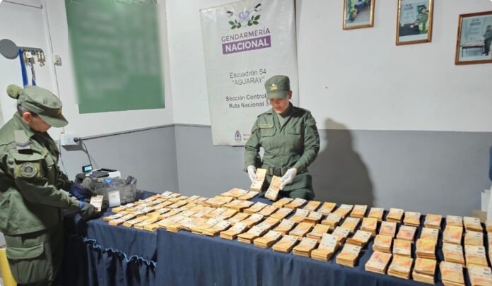 Ayer, durante un operativo de prevención vial llevado a cabo por la Sección Control de Ruta Nacional 34 del Escuadrón 54 “Aguaray”, se detuvo una camioneta Volkswagen que se desplazaba en dirección sur-norte. Durante la inspección del vehículo, los funcionarios notaron la presencia de 14 paquetes de gran tamaño envueltos en nylon negro en los asientos traseros. Al abrir los envoltorios, descubrieron fajos de billetes de 1.000 pesos, sumando un total de 129.887.000 pesos argentinos.