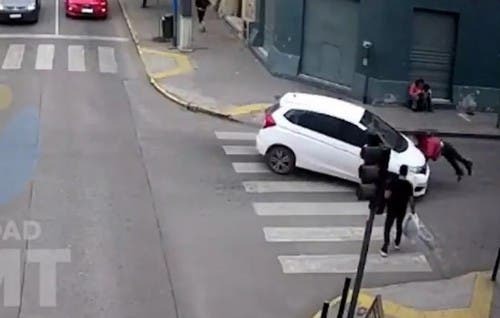 Un accidente vial ocurrió en pleno centro de San Miguel de Tucumán cuando un conductor aceleró justo cuando el semáforo cambiaba de verde a rojo y atropelló a una mujer que cruzaba por la senda peatonal. El incidente, que tuvo lugar en la esquina de las calles Maipú y Santiago, fue captado por la cámara del centro de monitoreo de la capital.